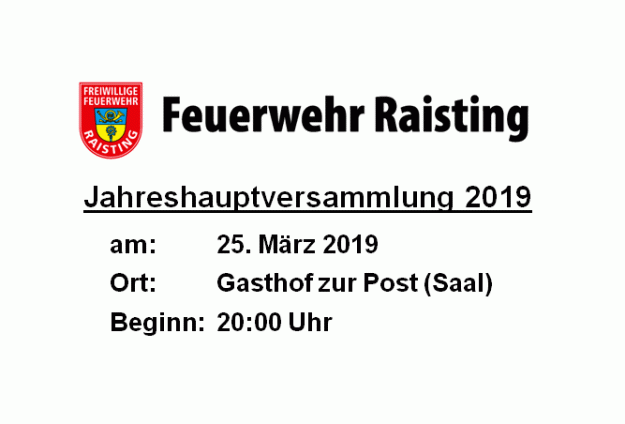 Der diesjährige Ausflug der Feuerwehr Raisting hat die Baustelle Echeslbacher Brücke Rottenbuch zum Ziel. Wir erhalten eine exklusive Führung und viele detailreiche Einblicke in Technik und Logistik. Termin ist der 18. April 2019 (Gründonnerstag). Abfahrt findet um 8:00 Uhr an der Kirche St. Remigius statt. Bitte bei Interesse anmelden bei: Stefan Merkl 08807/940934 oder Anton…