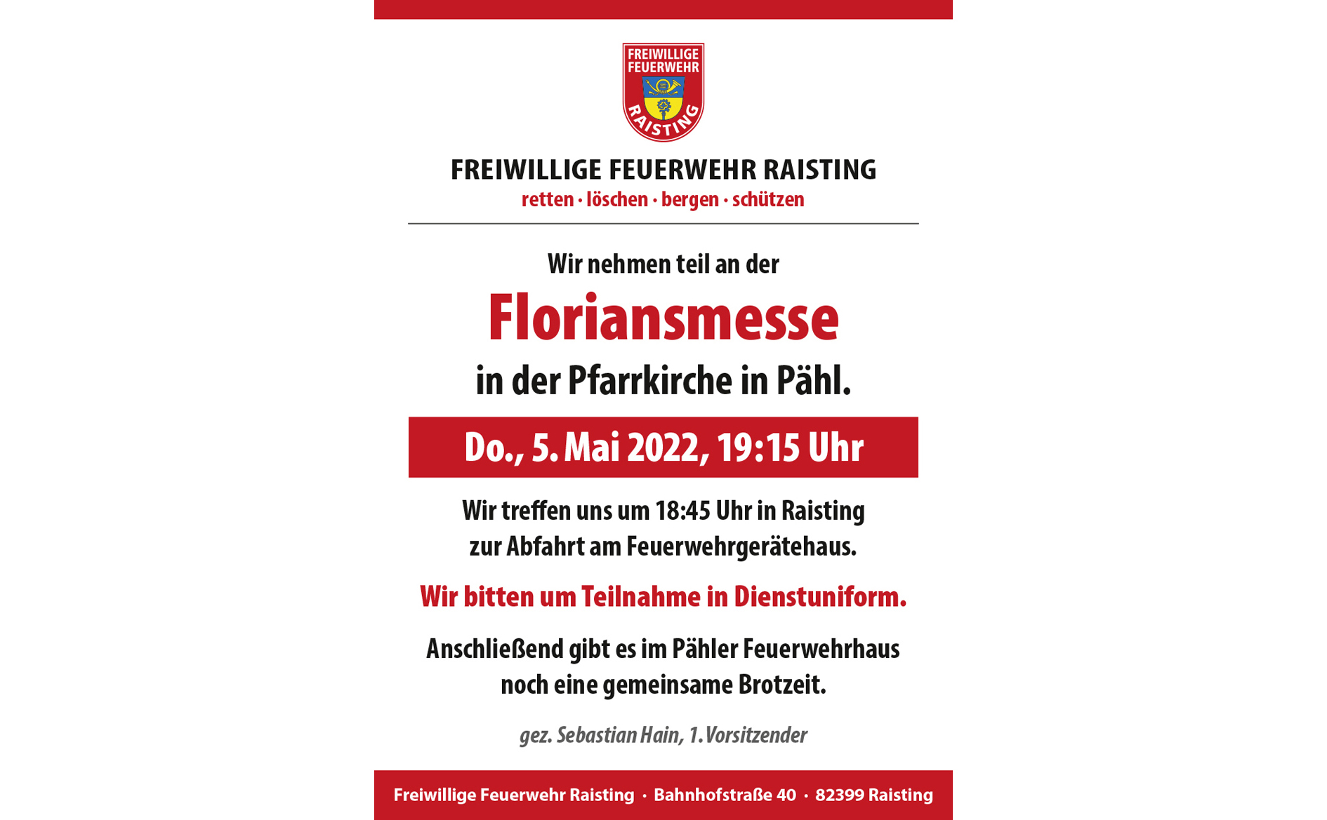 Sitzend von links: Andreas Bleicher, Sebastian Hain, Tanja Sobotta, Markus Eichberg und Thomas Schröferl. Stehend von links: Daniel Robeller, Stefan Merkl, Benny Jochmann, Manuel Frankl und Sebastian Schmid. Nicht auf dem Foto: Franz Schmid Die Raistinger Feuerwehr feiert 2025 sein 150-jähriges Gründungsfest. Vom 11. bis zum 14. September 2025 wird unser Jubiläum gefeiert werden. Dazu…